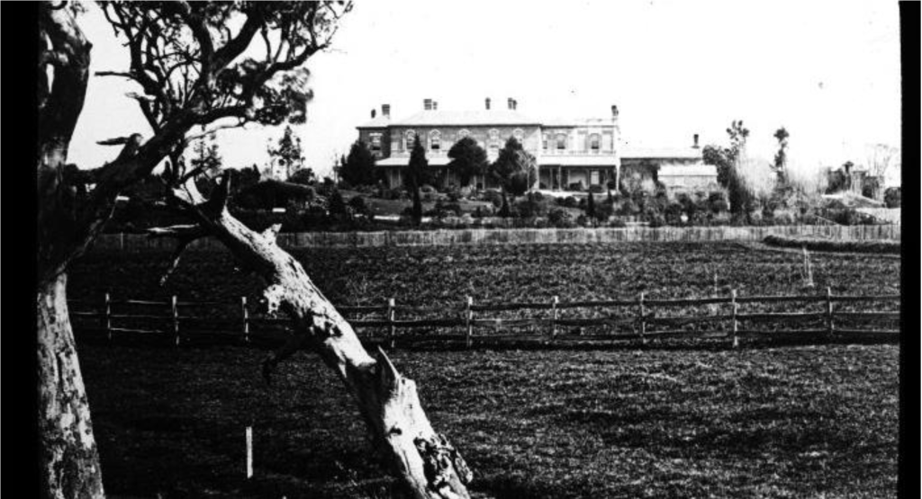 Frederick Augustus Rucker who went bankrupt and sold 120 acres to Theodotus John Sumner in 1852. Sumner died in 1884 and the original residence burnt down in 1885. It was rebuilt by his son-in-law James Grice in a ‘British Italianate’ style which ‘rose from the ground with extravagant gusto’ (36). Casey imagined that for her mother the new Stony Park must have been ‘a distorted echo of the earlier house where her childhood had been spent’ (33). Described as having as 22 rooms, balcony, tiled entrance hall, vestabuille with parquetry floor, polished cedar staircase and all conveniences.